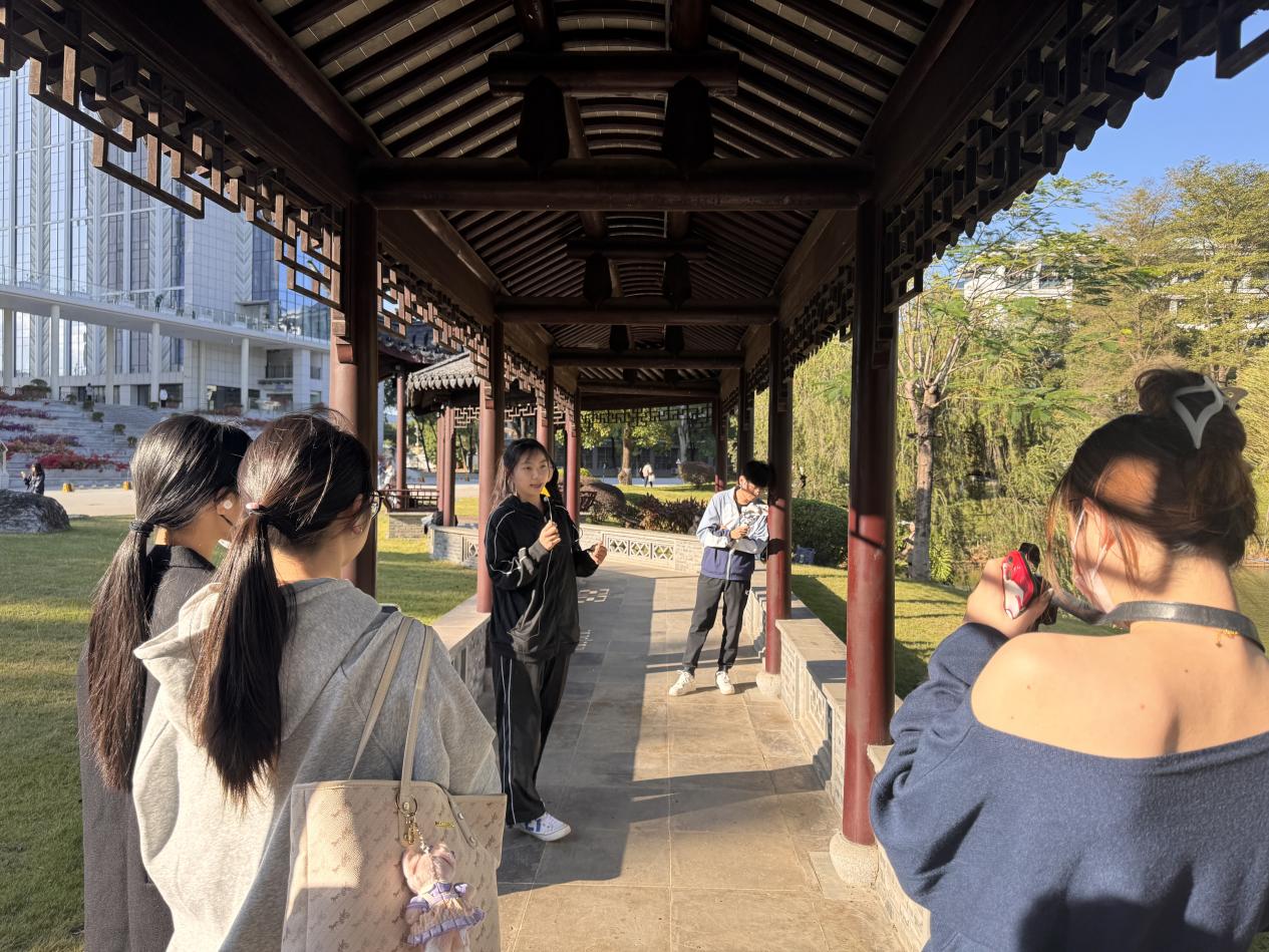 陈昕:通过这次活动,锻炼和提升了我们旅游管理专业学生的专业素养,并且让我们了解到了学校各个亭子的历史和建筑特色,游览了日月湖和廊桥,体验了射击运动和品茶。让我感受到学校的历史文化底蕴,以及学校对学生全面发展的用心良苦。
